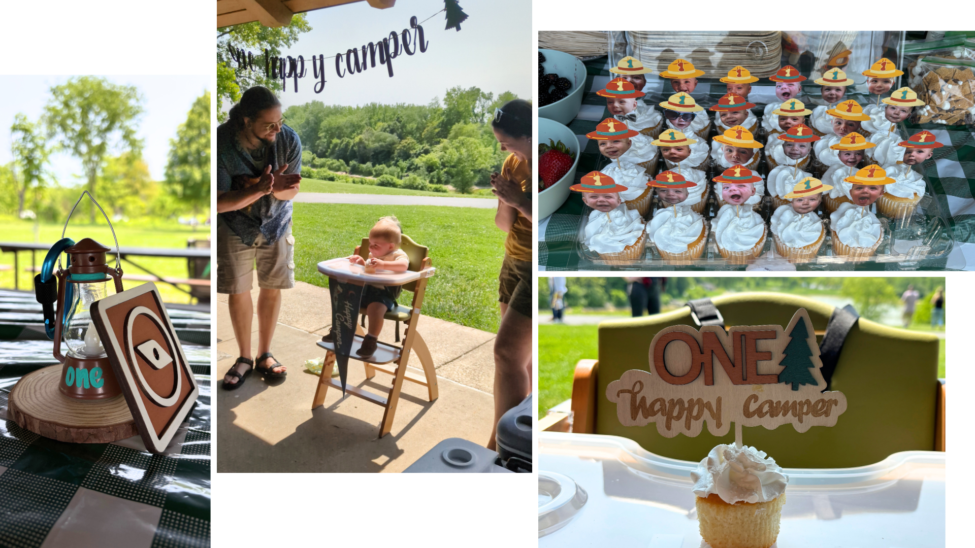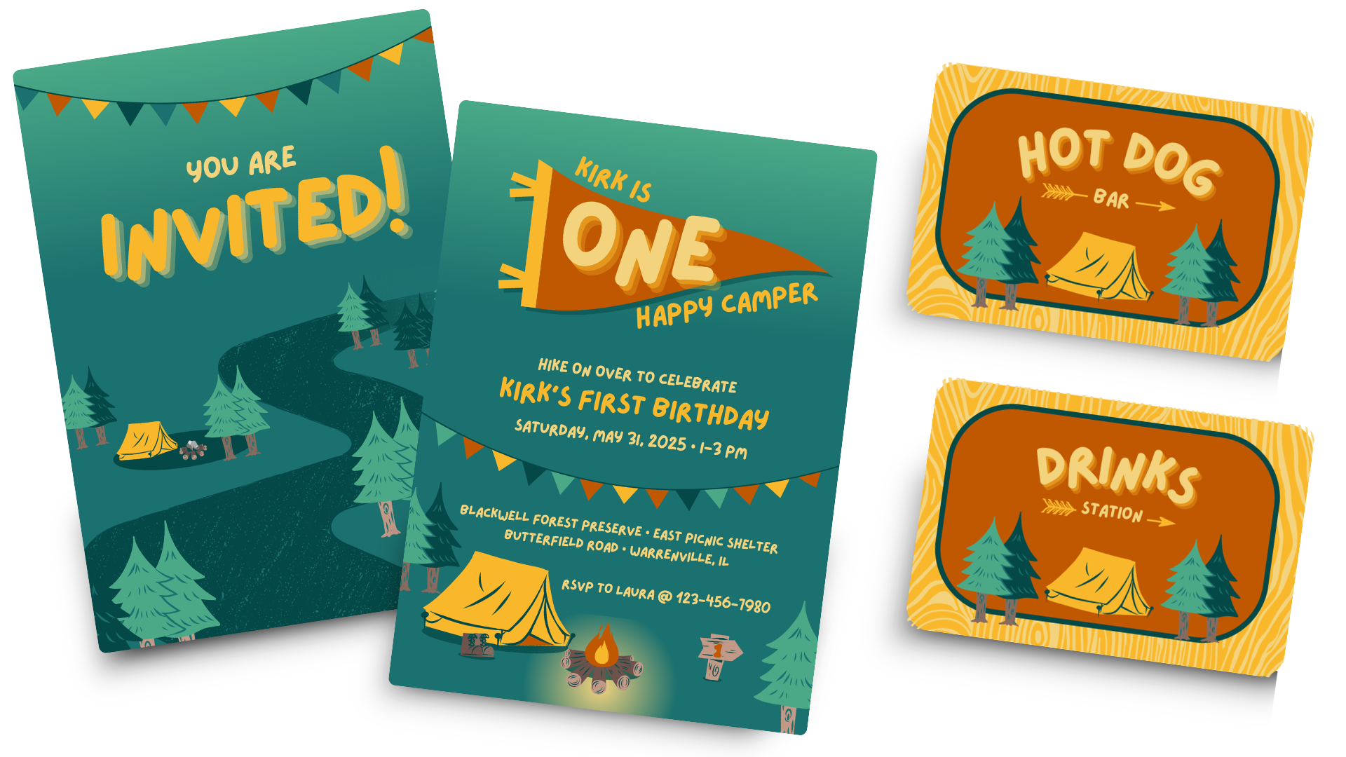 There’s something especially magical about celebrating a first birthday. It’s a big milestone that creates lasting memories and I wanted to add a little whimsy. For our son’s big day, I couldn’t resist leaning into the theme “One Happy Camper,” inspired by his love of the outdoors, his adventurous spirit, and celebrating at a nearby forest preserve. From cozy, nature-inspired decor and playful camping details to the custom invitations that set the tone, every element was designed to feel warm and adventurous.